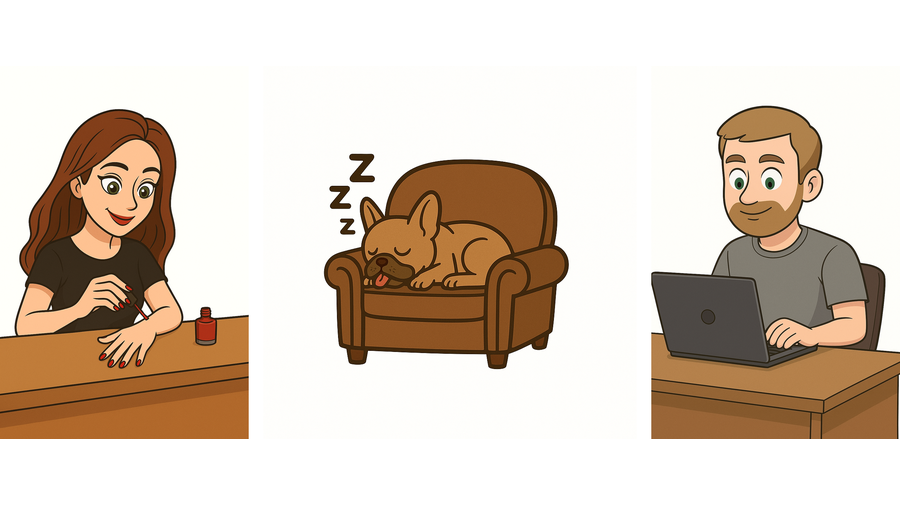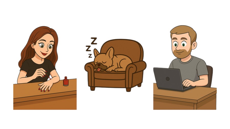 Nous sommes une équipe de 3 êtres vivants. Oui, il n'y a pas que des humains dans l'équipe : moi, à la création de vos belles petites capsules , motivée comme jamais pour sublimer vos mains. Nico, lui il travaille sur toute la partie contenu digitale, le site internet, il gère beaucoup de choses quoi 😅