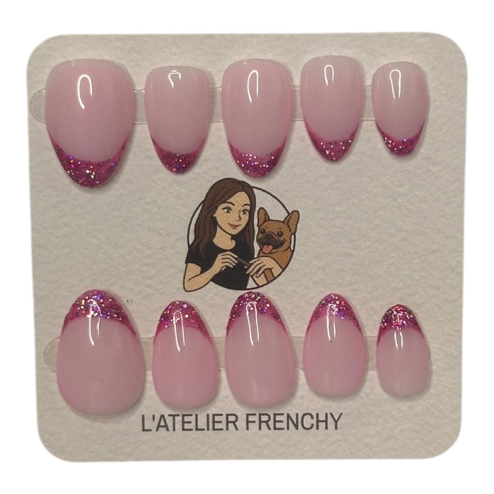 Un rose tendre sublimé par une pointe pailletée fuchsia, pour un look frais et féminin.